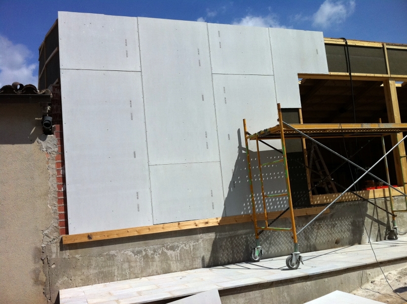 • Anbringen der Dämmplatten mittels Klebe- und Dübelverfahren.